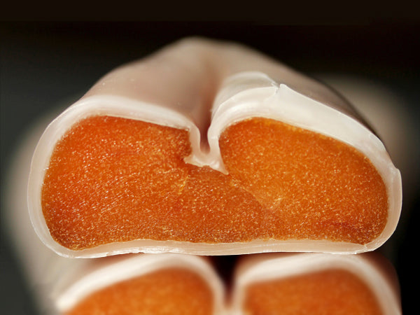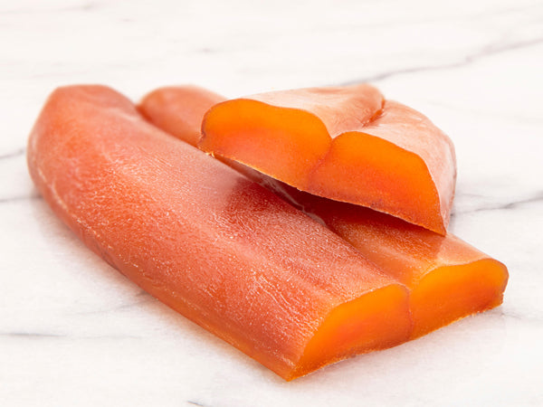 Ingrédients : Œufs de mulet, sel. À votre choix, vous pouvez l'emballer sous vide, le sceller dans de la cire cristalline ou de la cire d'abeille jaune (E901).